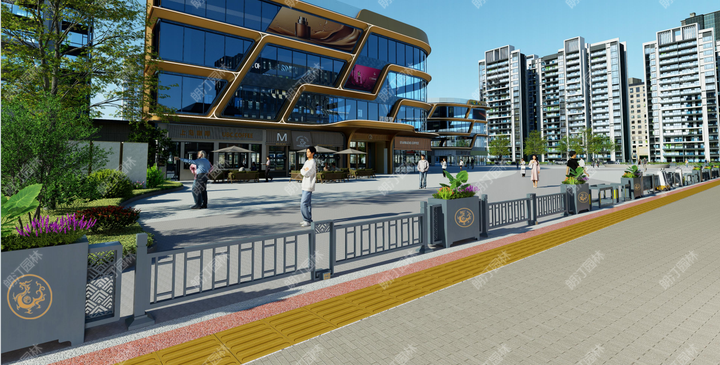 方案采用“固定+移动”差异化布局:商业广场周边区域配置固定花箱护栏,稳固界定边界的同时融入景观;商场出入口核心区域则针对性搭配两类护栏,实现人车高效分流。其中,移动花箱护栏可灵活开启,专为方便车辆出入设计;T形与L形护栏精准适配人行通道规划,保障行人顺畅通行,真正实现“随时可开可观”的灵活优势,彻底告别传统设施的动线限制与搬运难题。