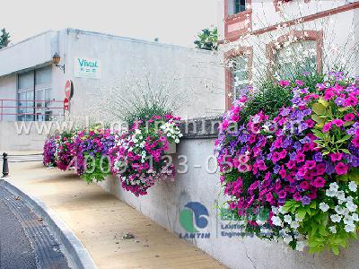 在造景的手法上不仅是在传统的花箱上做了改变和结构进化。还在种植层面的整体性上出发,做出优秀的产业风景画。有在墙体上做植物墙装饰的,有结合自家古典橱柜制作新式花格的,将半壁式的花盆固定于墙角或阳台栏杆上的。其中多能见到的是鞍式的花盆挂于栏杆两侧,上下种植两层植物,下层一般种植垂吊植物,房屋的外侧看,仿佛是一个绿色的瀑布。